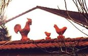 Form oder Figur, in verschiedenen Farbtönen, Ihren individuellen Vorstellungen bei der Dachgestaltung sind keine Grenzen gesetzt. Spuren deutscher Geschichte und Symbole der Vorstellungswelt unserer Ahnen finden sich bis heute auf unseren Hausdächern. Der Hahn gilt als Glücksbringer und Behüter des Hauses, sowie als Zeichen der Fruchtbarkeit. Er ist Symbol für Wachsamkeit, vorallem für Feuer.
