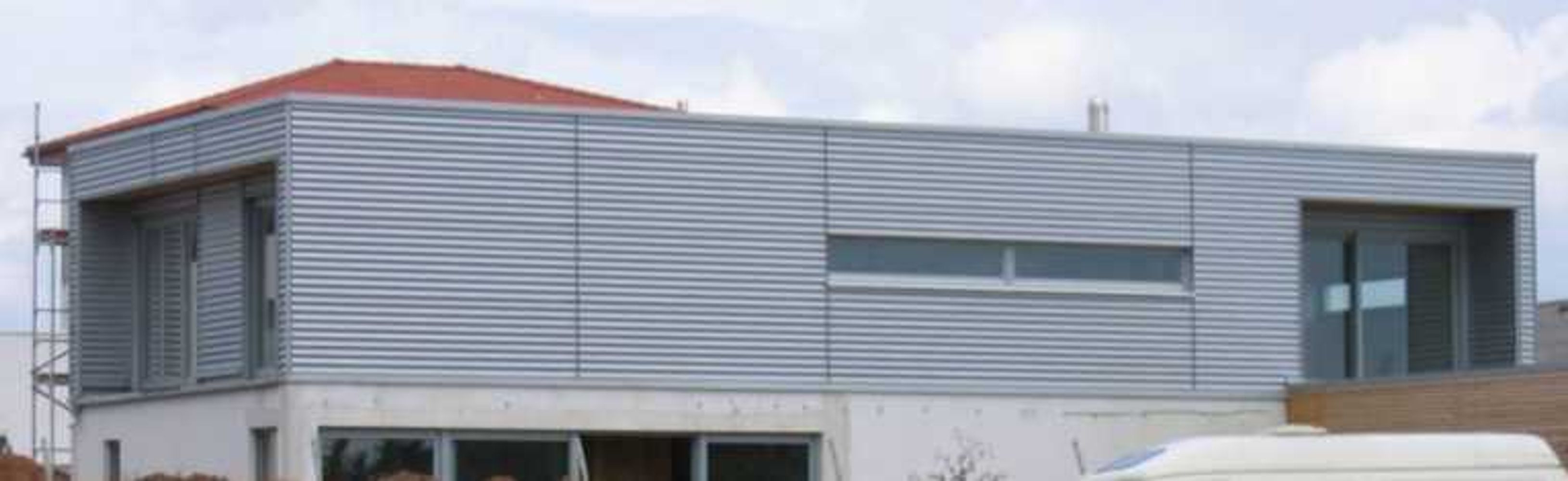 - Bindeglied - zwischen moderner Titanzink-Fassadenbekleidung in Stülpdeckung Neubau Bürogebäude mit Hallenanbau, eigenes BV
